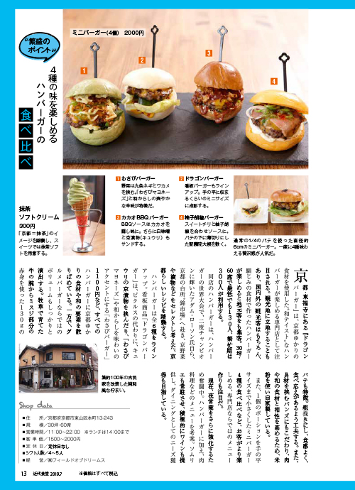 eo光チャンネル 関西☆美食紀行 グルマンの隠れ家 2020年4月 eo光チャンネル 関西☆美食紀行 グルマンの隠れ家『京都・東福寺』でドラゴンバーガーが紹介されています。eoグルメにも掲載されています。
